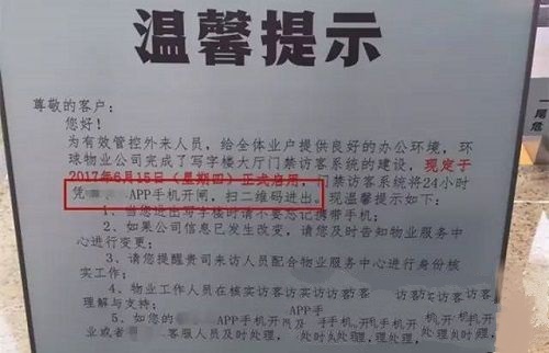 近日在成都便發(fā)生了一起“移動(dòng)門(mén)禁擾人事件”:某區(qū)部署移動(dòng)門(mén)禁,開(kāi)啟APP進(jìn)出時(shí)代。簡(jiǎn)單地說(shuō)便是要求住戶在進(jìn)門(mén)前必須下載安裝APP,通過(guò)軟件掃碼進(jìn)入,如以下告示所示:
