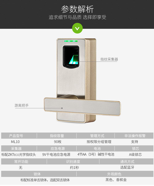 商品名稱:中控智慧(zkteco)ML10智能鎖家用電子鎖 室內(nèi)門指紋鎖 鋼琴黑 標(biāo)配