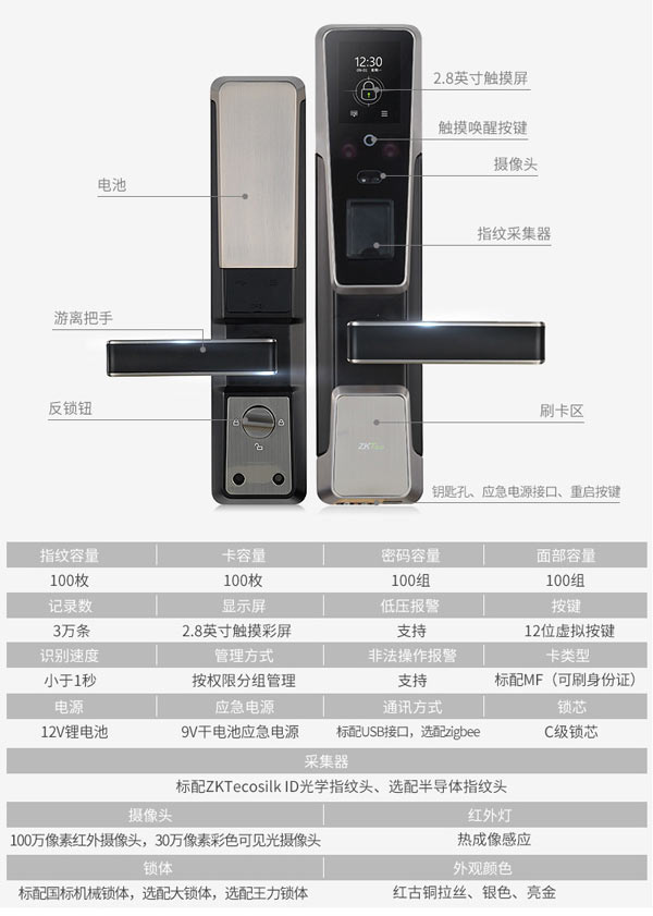 商品名稱:中控智慧(ZKTeco)ZM100指紋鎖電子鎖智能門(mén)鎖密碼鎖防盜門(mén)鎖家用 亮金色 標(biāo)配