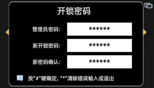 1) 設(shè)置公共開(kāi)鎖密碼和公共挾持開(kāi)鎖密碼,輸入正確的管理員密碼,可設(shè)置新的公共開(kāi)鎖密碼和公共挾持開(kāi)鎖密碼。注:兩個(gè)開(kāi)鎖密碼關(guān)系為反序,且不可相同。系統(tǒng)出廠(chǎng)時(shí)默認(rèn)的公共開(kāi)鎖密碼是012345,默認(rèn)挾持開(kāi)鎖密碼為543210。假如將公共開(kāi)鎖密碼設(shè)置為666666或121121,則公共挾持開(kāi)鎖密碼與公共開(kāi)鎖密碼相同,違反設(shè)置規(guī)則,提示設(shè)置失敗。