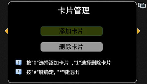 1) 添加住戶(hù)IC卡,按“0”可選擇添加卡片功能。如圖4.12.1: