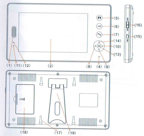 同時(shí)壓下),屏上最示“VER--4VI pairing-"時(shí)進(jìn)入對碼,如果在屏上看到門口機(jī)攝像機(jī)前的影像時(shí),對碼成功。| 室外機(jī)分機(jī) | 室內(nèi)機(jī)分機(jī) | ||