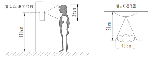 5) 主機(jī)安裝高度不能過高,主機(jī)鏡頭離地面高度為140cm-150cm為最適合。