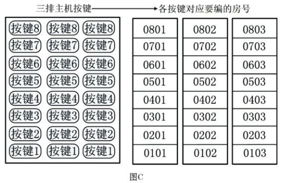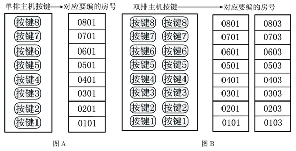 第六章中的6.3段已經(jīng)介紹了房號設(shè)置的方法,也就是數(shù)碼式主機(jī)的房號設(shè)置方法,那么直按式的主機(jī)房號應(yīng)該怎么編呢?下面來介紹下直按式主機(jī)每個(gè)按鍵所對應(yīng)的房號。