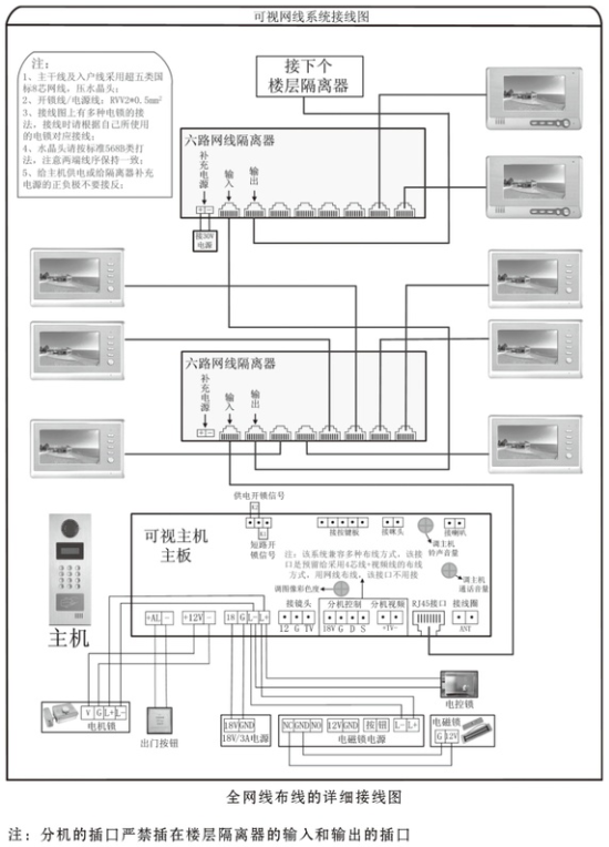 5、分機(jī)不能對講:檢查分機(jī)喇叭和各端口的連線是否正確;