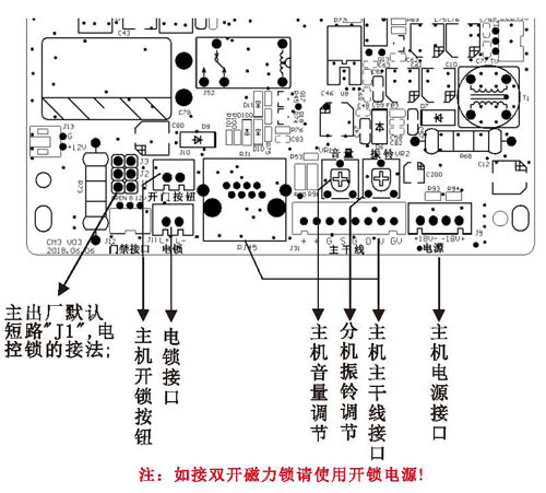 根據(jù)接線(xiàn)圖把單元內(nèi)所有的設(shè)備通上電源,在門(mén)口機(jī)輸入4位或3位房號(hào)后,門(mén)口機(jī)有提示聲,室內(nèi)分機(jī)按接聽(tīng)后,即可對(duì)講。