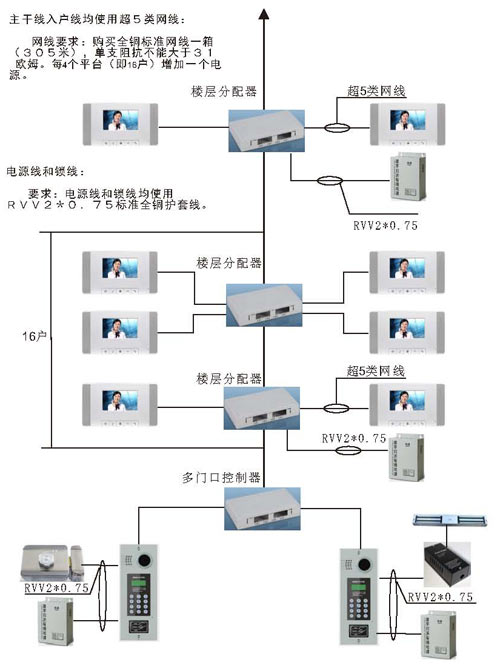 例如:每層裝有兩個(gè)4戶(hù)型樓層解碼器,共有8戶(hù)分機(jī),第一層分機(jī)房間號(hào)是105至112,則輸入1205;